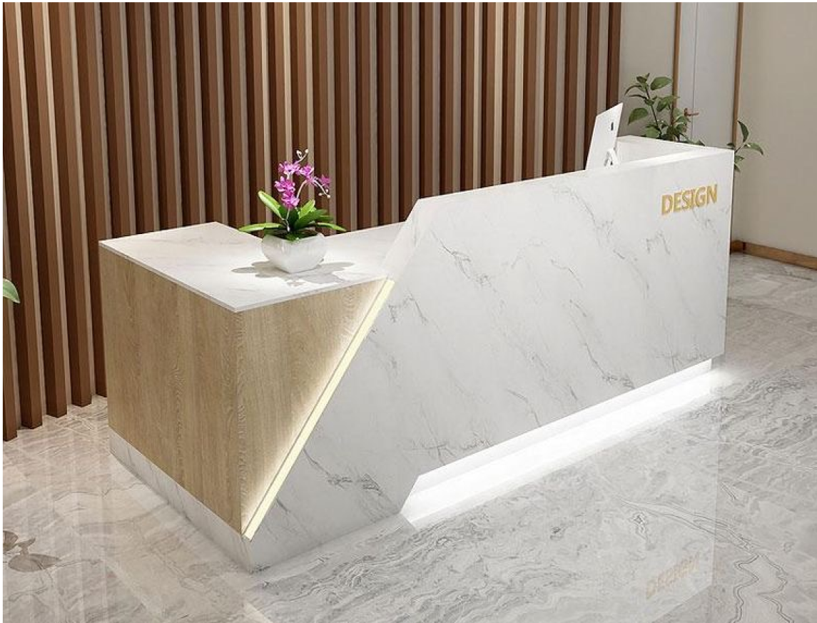 Sleek and professional countertop designs for office reception, hotel reception, and others.